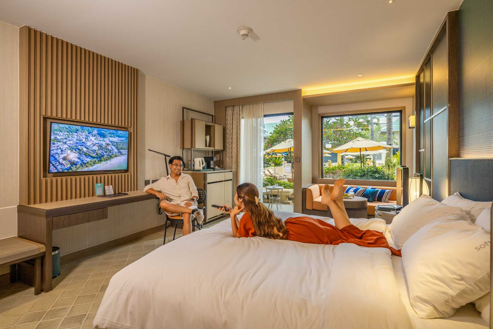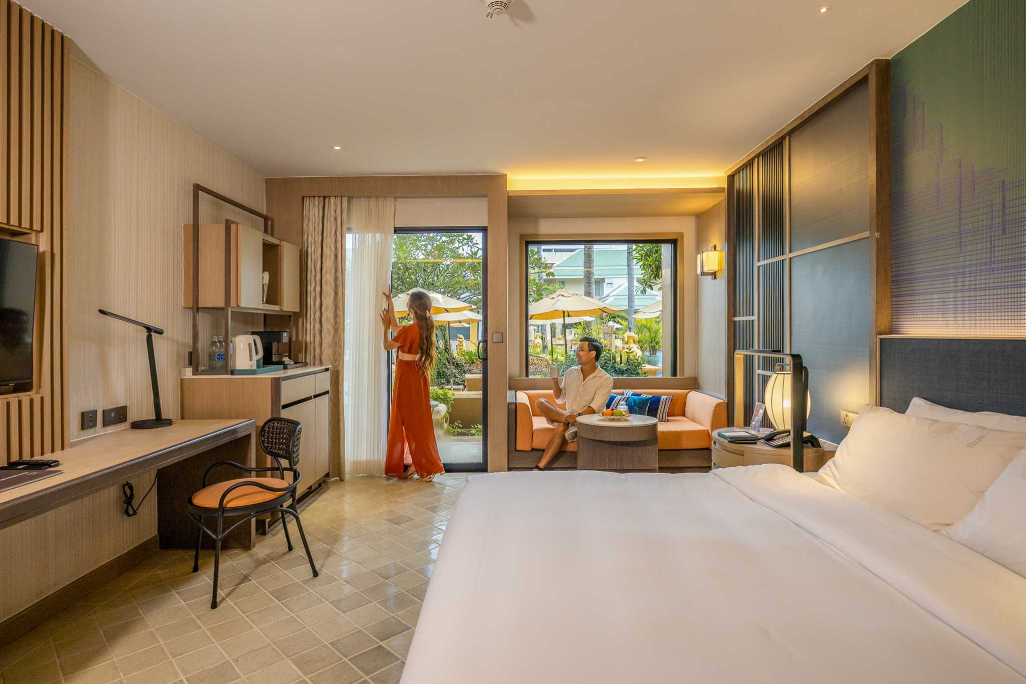 We stayed in the Busakorn Wing – Premium Pool View Ground Floor. The room is stylishly designed with a perfect layout: separate bathroom and shower, a dedicated dressing area (a big plus for the ladies), and a small terrace to enjoy the view. There’s also a cozy sofa corner, crisp cool air-conditioning, and a perfectly firm, comfy bed. Being on the ground floor means you can step right out to the pool—super convenient!